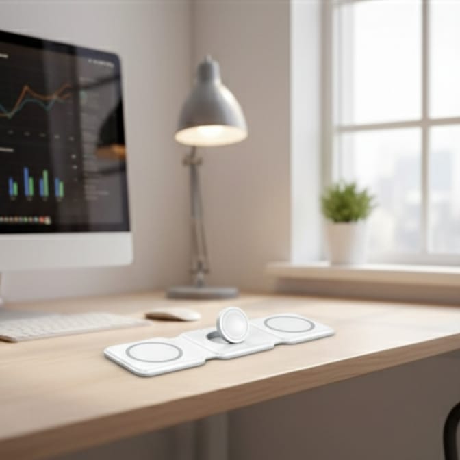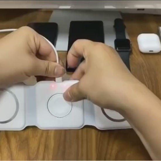 Charge all your devices at once with the 3-in-1 Magnetic Wireless Charger from Accessory Avenue! This versatile, compact charging station uses magnetic Qi technology for seamless, cable-free charging of your smartphone, smartwatch, and earbuds simultaneously. Perfect for Apple users, it supports MagSafe-compatible iPhones (up to 15W), Apple Watches, and AirPods/A9 Pro/Samsung Buds cases. The foldable design with adjustable arms makes it travel-friendly, while LED indicators show charging status. No more tangled cables—simply snap your devices into place for efficient, safe power delivery. Compatible with most USB-C power adapters, including our Samsung 25W/45W PD adapters. Shop now for fast shipping and simplify your charging routine!